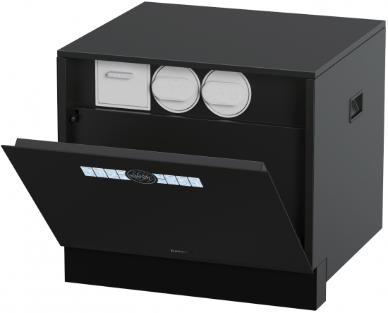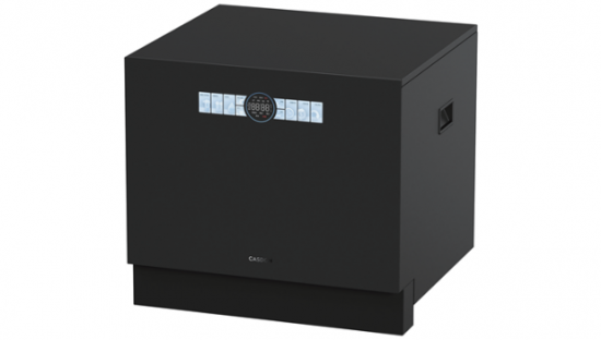 外观设计上,黑色喷粉钣金搭配黑色玻璃门板,白色细磨砂塑料组件点缀,哑光、亮面、丝印多种工艺结合,整体黑白主色调克制又高级。不管是独立摆放还是嵌入橱柜,都不会破坏厨房的整体美感。